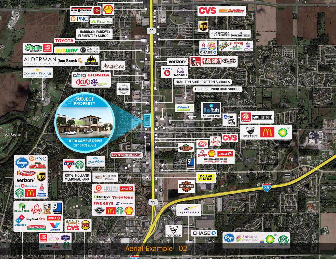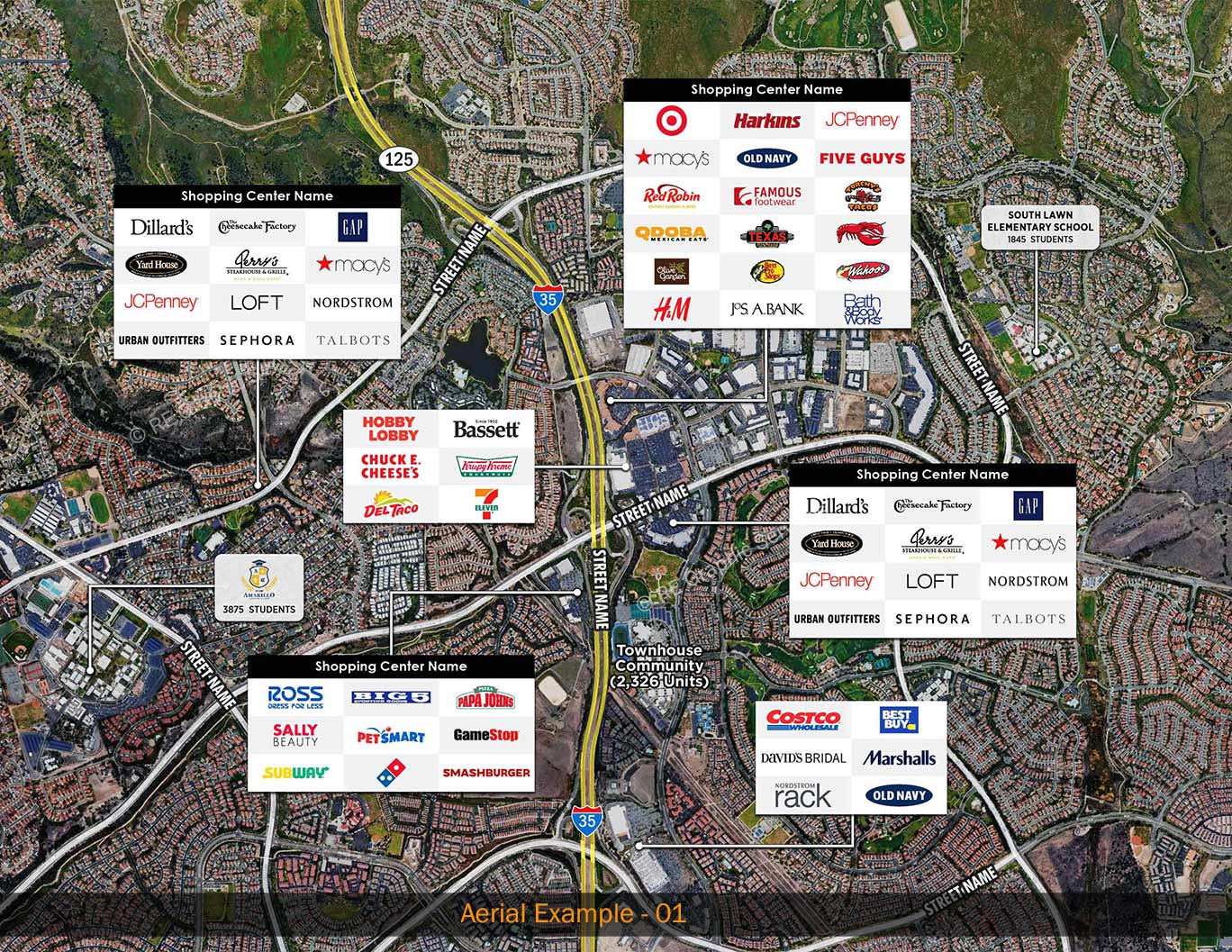 list out all the details of the neighborhood? Our Aerials is the best option to get it done. We can have details like major retailers, the schools, competitive